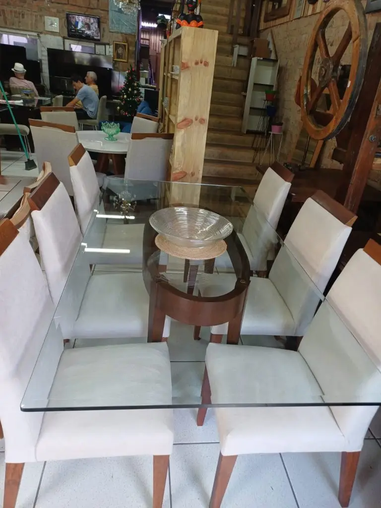 Mesa sem cadeiras pés de madeira e tampo de vidro - cod. 263